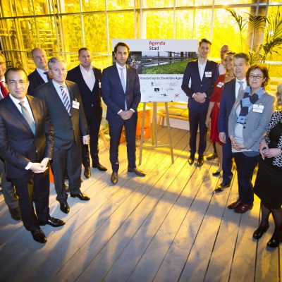 Tijdens de eerste nationale Voedseltop in The New Farm in Den Haag tekenden Staatssecretaris Van Dam, minister Schippers en Minister Plasterk samen met bestuurders van twaalf steden en de provincie Gelderland, de City Deal ‘Voedsel op de ...
