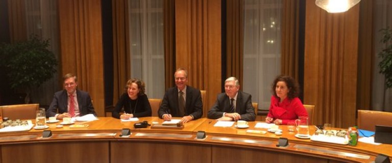 Op de foto van links naar rechts: secretaris-generaal Richard van Zwol (BZK), gedeputeerde Adri Bom-Lemstra (PZH), minister Henk Kamp (EZ), voorzitter Ab van der Touw (EPZ) en wethouder Ingrid van Engelshoven (MRDH).
