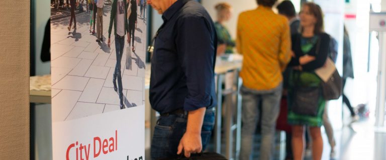 Vervolgens was het tijd voor de lunchpauze, waarin misschien wel de belangrijkste kennisoverdracht plaatsvond: overal stonden ‘plukjes’ deelnemers elkaar enthousiast bij te praten over de eerste deelsessies en initiatieven in hun steden of instellingen. Daarnaast vonden er diverse ‘speeddates’ plaats met ambtenaren van OCW, over het beleid van het ministerie en van BZK, over het beleid van Agenda Stad, van waaruit de City Deals voortkomen.