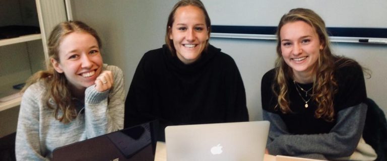 Foto: Studenten Emma, Maja en Rosa werken aan hun adviesrapport | Fotograaf: Guinevere Simpson
