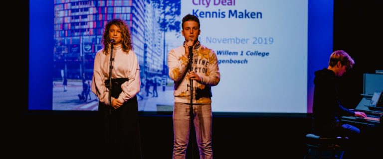 In een goedgevulde theaterzaal van het Koning Willem I College in Den Bosch trapte de vierde kennisdelingsdag van de City Deal Kennis Maken af met een muzikaal optreden van twee studenten. Een kleine 200 deelnemers van gemeenten, kennisinstellingen en andere partners waren naar Den Bosch afgereisd om ervaringen uit te wisselen en kennis te delen met elkaar.